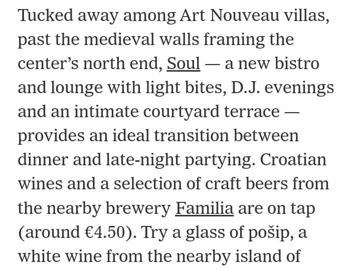 by admin08. 06. 2023| 162 views U posljednjem broju NYT naše drage partnere iz Soul/Split i nas su preporučili kao must try u Splitu. Share: